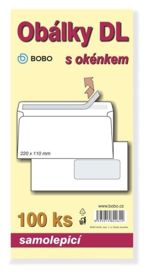 Obálka DL s oknem, samolepicí Balení 100ks.br brBalení klasických poštovních obálek ve formátu DL. Balíček obsahuje 100 kusů samolepicích obálek s okénkem.