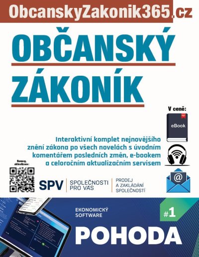 Úplné znění zákona s komentáři novel v právním stavu pro rok 2026 br Nové vydání příručky pro profesionální uživatele (komplet tištěného vydání a e-booku). br Obsah: systematické podrobné úvodní komentáře všech novel + aktuální úplné znění občanského zákoníku + servisní webová stránka br Hlavní vlastnosti: rozlišení novel a jejich detailní úvodní komentáře, orientační prvky, uspořádání a přehledná grafická úprava zohledňující potřeby přesné práce s textem, Publikace s doplňkovým servisem pro náročné profesionální uživatele. Pro studium, školení, rychlé osvojení změn a použití v denní právní praxi.