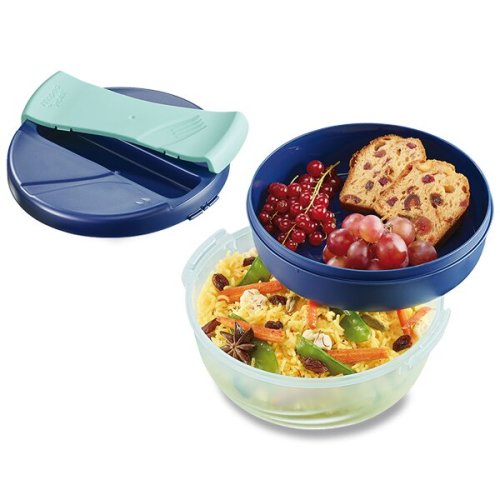 • obsahuje hlavní box, menší vyjímatelný vnitřní box a víko, * ve víku je úložný prostor na příbor a ubrousek (není součástí obědového boxu), * neobsahuje bisfenol A ani ftaláty, * otevření víka pootočením fixace v libovolném směru, * možno mýt v myčce, bez víčka ohřívat v mikrovlnné troubě či ukládat do mrazáku