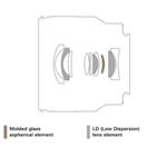 Barevná vada je častou vadou optiky, projevující se mnoha způsoby. Často hovoříme o takzvané chromatické aberaci, která se vyskytuje častěji u širokoúhlých objektivů. LD členy jsou vyrobeny ze speciálních optických skel s extrémně nízkým rozptylem světla, která efektivně kompenzují barevnou vadu, obzvláště patrnou při používání teleobjektivů v krajní poloze.