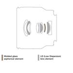 Barevná vada je častou vadou optiky, projevující se mnoha způsoby. Často hovoříme o takzvané chromatické aberaci, která se vyskytuje častěji u širokoúhlých objektivů. LD členy jsou vyrobeny ze speciálních optických skel s extrémně nízkým rozptylem světla, která efektivně kompenzují barevnou vadu, obzvláště patrnou při používání teleobjektivů v krajní poloze.