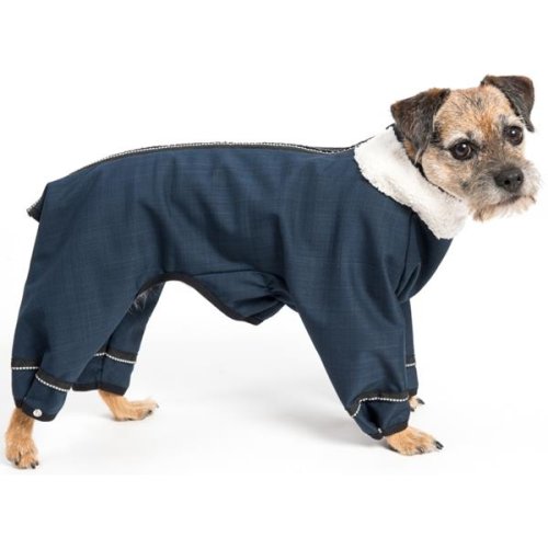 Zimní kombinéza LUNA pro psa je navržena tak, aby chránila všechny důležité partie psího těla (včetně končetin) před chladem, větrem, sněhem i deštěm. Funkční materiál – membránový softshell – splňuje hned několik funkcí najednou: je hřejivý, nepromokavý (s omezením), větruodolný a zároveň prodyšný. Svrchní vrstvu tvoří měkká tkanina s hladkým povrchem, který je vodoodpudivý a neulpívá na něm sníh. Pod ní je větru- a voděodolná membrána podšitá příjemným beránkem. Okraje kombinézy jsou obšité elastickým lemem a nohavice lze sepnout praktickými patentkami, aby obleček nikde neodstával a neprofukoval. Pro snadné oblékání a svlékání má kombinéza zip přes celá záda. Za krkem je otvor pro připnutí vodítka k obojku. Samozřejmostí jsou reflexní prvky. Vlastnosti oblečku:
