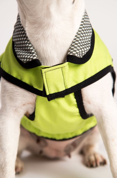 Reflexní body na oblečku pro vyšší bezpečnost psa.