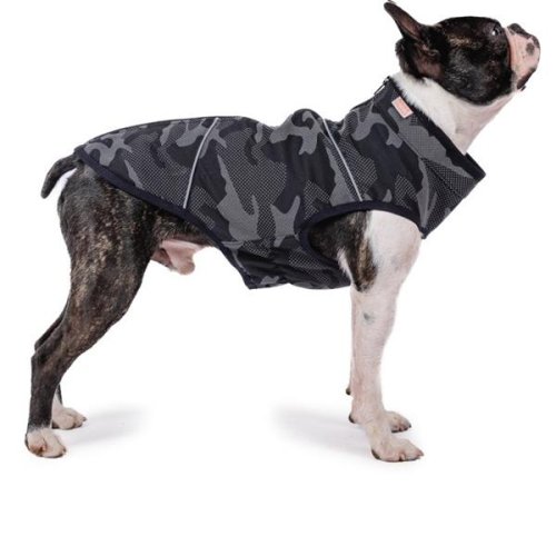 Funkční softshellová vesta Tulák Splendor je ideální pro každodenní nošení v chladnějším, větrném i deštivém počasí a vhodná i pro starší a nemocné psy nebo psy, kteří se neradi oblékají. Vysoce kvalitní třívrstvý softshell má nejen vynikající termo- a hydroizolační vlastnosti, ale také vysokou prodyšnost a elastičnost. Obleček je tvarovaný anatomicky tak, aby psa neomezoval v pohybu, a přitom chránil všechny důležité partie jeho těla. Okraje jsou obšité pružným lemem, takže neodstávají a vesta díky tomu výborně drží na těle psa, nepodfukuje a neuniká zpod ní teplo. Pod krkem je všité poutko pro zavěšení (např. při sušení). Oblékání je velmi snadné a rychlé: přední nohy prostrčíte skrz otvory a obleček zapnete pomocí zipu všitého přes celá záda. Pro bezpečnější venčení za zhoršené viditelnosti je vesta opatřena reflexními prvky. Vlastnosti materiálu: