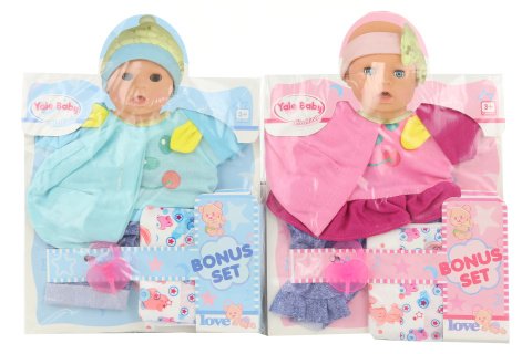 Oblečení pro panenku o velikosti cca 40 cm. Balení obsahuje také plenku a dudlík. Věk 3+