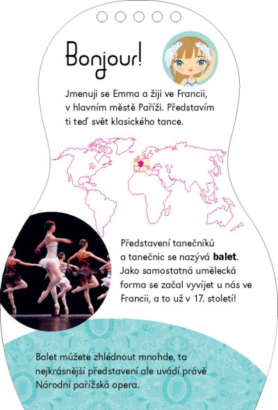 Další titul oblíbené série, která našla své obdivovatele v desítkách zemí světa, představuje malým čtenářům kouzlo světa baletu prostřednictvím panenky Emmy. Kreativní omalovánky, spousta samolepek… knížka obsahuje vše, co je třeba k vytvoření nesčetných modelů pro baletky. A k tomu se děti dočtou i spoustu zajímavých informací navrch! Co si baletky oblékají na trénink a co na představení? Jaké jsou nejslavnější balety a kam na ně zajít? To a ještě mnohem víc se dozvíte, vydáte-li se za poznáním s našimi panenkami. A ke každé knížce dostanete krásný náramek pro štěstí!