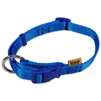 Obojek z popruhu v jednobarevném provedení se zapínáním na plastovou přezku. Jednoduchá nastavitelnost obvodu.