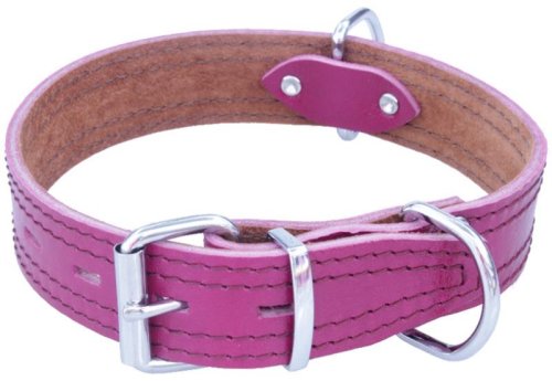 Kožený šitý obojek z vrchové hovězí kůže od společnosti B&F. Obojek je zdobený prošitím. Velice snadné zapínání na velkou kovovou sponu. Český výrobek. Rozměry: 4,0 x 65 cm (šířka x délka) Barva: Fuchsiová (tmavě růžová)