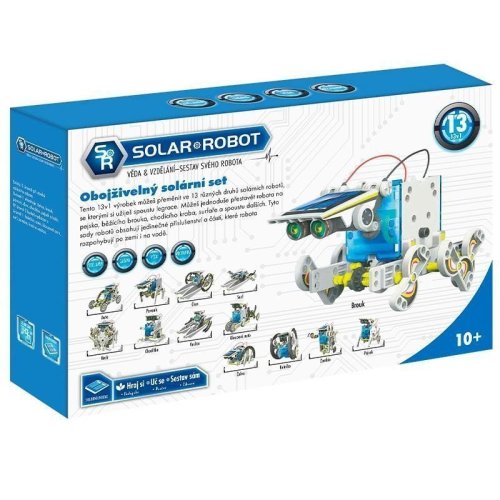 Solární set pro malé vědátory. Jedinečná stavebnice, která ti umožní poskládat si až 13 různých druhů solárních modelů, od pejska s vrtícím ocáskem, přes lezoucího brouka, parádní autíčko až po loď. Všechny tyto zábavné modely jsou poháněny sluneční energií, na jejich provoz tedy nepotřebuješ žádné baterie. Všechny modely mají zajímavé funkce, které tě zabaví na celé hodiny. Obsahuje jedinečné díly a příslušenství, které umožňují robotům pohybovat se na zemi a dokonce i ve vodě. Je to jen tobě co postavíš, tak neváhej a dej se do stavění.