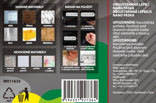 Nanoadhezivní průhledná páska je znovupoužitelná oboustranná páska. Nezanechává žádné stopy a nepoškodí vaše stěny a povrchy.