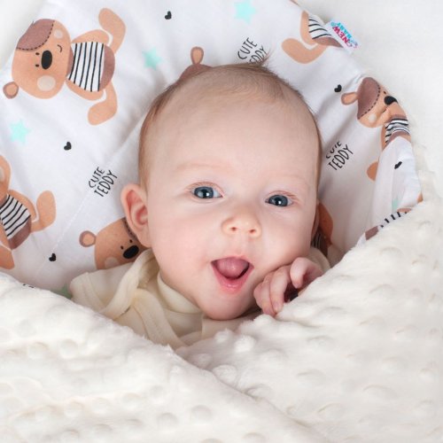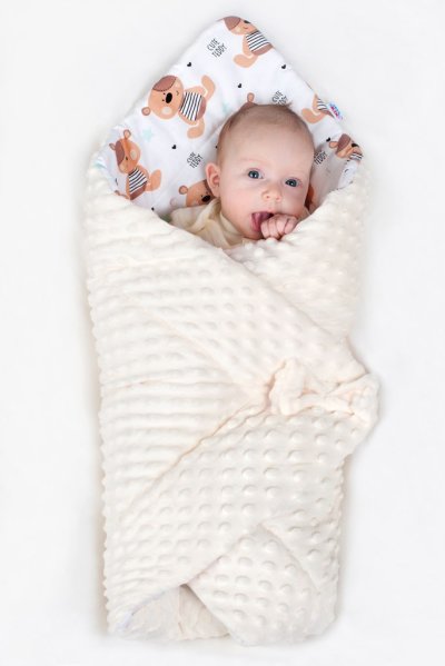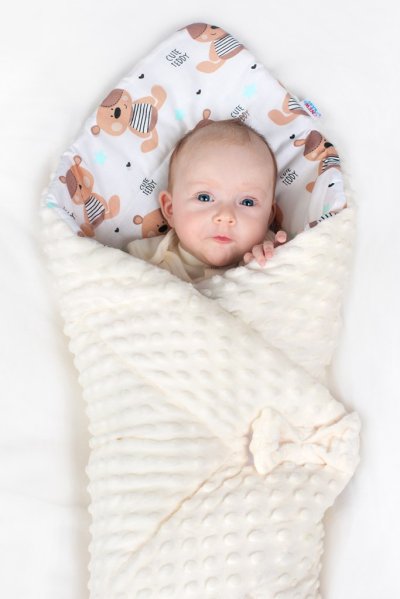 Oboustranná měkkoučká zavinovačka z Minky New Baby. Zavinovačka je vyrobena ze dvou typů tkanin a je zdobena krásnou mašličkou. Jedna strana je velmi měkká a na dotek příjemná, hebká Minky látka s výstupky pro stimulaci senzomotoriky a druhá strana je 100% bavlna potištěná krásným dětským vzorem. Je vyrobena z velmi kvalitního materiálu, který nepouští barvu a nevyvolává alergické reakce. Zavinovačka má zapínání na suchý zip. Miminko se v naší zavinovačce bude cítit jednoducho úžasně. Prudukt české značky. Rozměry: cca 75x75 cm. Složení – povlak 100% bavlna a Minky 100% polyester. Výplň – 100% antialergické vlákno.<BR>Tyto výrobky jsou bezpečné, protože:<BR>- materiál odpovídá normě Oeko-Tex Standard 100<BR>- přírodní bavlna nezpůsobuje odřeniny a podráždění, jelikož neobsahuje formaldehydy a další prvky, které kojencům škodí<BR>- neztrácí barvu a nezabarvuje oblečení<BR>- nabízené vzory jsou příjemné na pohled a mají uklidňující barvy<BR>- nejsou použity žádné knoflíky ani žádné další plastové nebo ocelové části, které mohou být pro Vaše dítě nebezpečné<BR>- materiál, který je používán pro výplně polštářů a přikrývek, je 100% protialergický, což znamená, že se v jeho vláknech nešíří žádné mikroorganismy ani plíseň.