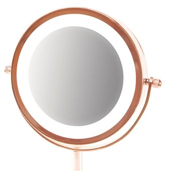 Oboustranné kosmetické zrcátko Rio poskytuje 5x zvětšení s měkkým LED světlem a je ideální pro nanášení make-upu a pro kosmetická ošetření vyžadující přesnost. Otočná konstrukce o 360° umožňuje snadné nastavení zrcátka a změnu mezi zvětšením. Díky provozu na baterie jej lze použít kdekoli.