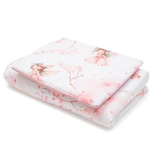 Nádherný oboustranný set New Baby Víly do kočárku. Set je vyroben ze dvou typů tkanin. Bavlněný materiál s krásným dětským motivem z jedné strany a Velvet materiál z druhé strany. Velvet je velice příjemný a jemný na dotek a po dlouhou dobu si zachovává svůj původní tvar. Je ideální jak pro miminka od narození, tak pro větší děti jako deka na hraní, do kočárku nebo na ven. Set obsahuje polštářek a přikrývku. Klademe důraz na kvalitu a proto je set z Velvet ušitý z velmi kvalitního materiálu, který nepouští barvu a nevyvolává alergické reakce. Set je jemný na dotek, hřejivý, tulivý, jedinečný a velmi odlišný od ostatních. Vše je vyplněno antialergickým vláknem. Složení: z jedné strany 100% bavlna potištěná krásným dětským vzorem, druhá strana je Velvet látka-100% polyester, výplň 100% antialergické vlákno. Materiál odpovídá normě Oeko-Tex Standard 100. Rozměry: polštářek: cca 30x25 cm, přikrývka: cca 75x50 cm. Tyto výrobky jsou bezpečné, protože:<BR>- přírodní bavlna nezpůsobuje odřeniny a podráždění, jelikož neobsahuje formaldehydy a další prvky, které kojencům škodí<BR>- neztrácí barvu a nezabarvuje oblečení<BR>- nabízené vzory jsou příjemné na pohled a mají uklidňující barvy<BR>- nejsou použity žádné knoflíky ani žádné další plastové nebo ocelové části, které mohou být pro Vaše dítě nebezpečné<BR>- materiál, který je používán pro výplně polštářů a přikrývek, je 100% protialergický, což znamená, že se v jeho vláknech nešíří žádné mikroorganismy ani plíseň <BR>Produkt české značky.