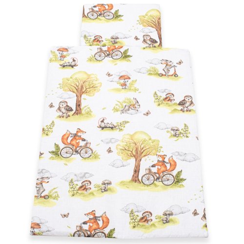 Nádherný oboustranný set New Baby Zvířátka v lese do kočárku. Set je vyroben ze dvou typů tkanin. Bavlněný materiál s krásným dětským motivem z jedné strany a Velvet materiál z druhé strany. Velvet je velice příjemný a jemný na dotek a po dlouhou dobu si zachovává svůj původní tvar. Je ideální jak pro miminka od narození, tak pro větší děti jako deka na hraní, do kočárku nebo na ven. Set obsahuje polštářek a přikrývku. Klademe důraz na kvalitu a proto je set z Velvet ušitý z velmi kvalitního materiálu, který nepouští barvu a nevyvolává alergické reakce. Set je jemný na dotek, hřejivý, tulivý, jedinečný a velmi odlišný od ostatních. Vše je vyplněno antialergickým vláknem. Složení: z jedné strany 100% bavlna potištěná krásným dětským vzorem, druhá strana je Velvet látka-100% polyester, výplň 100% antialergické vlákno. Materiál odpovídá normě Oeko-Tex Standard 100. Rozměry: polštářek: cca 30x25 cm, přikrývka: cca 75x50 cm. Tyto výrobky jsou bezpečné, protože:<BR>- přírodní bavlna nezpůsobuje odřeniny a podráždění, jelikož neobsahuje formaldehydy a další prvky, které kojencům škodí<BR>- neztrácí barvu a nezabarvuje oblečení<BR>- nabízené vzory jsou příjemné na pohled a mají uklidňující barvy<BR>- nejsou použity žádné knoflíky ani žádné další plastové nebo ocelové části, které mohou být pro Vaše dítě nebezpečné<BR>- materiál, který je používán pro výplně polštářů a přikrývek, je 100% protialergický, což znamená, že se v jeho vláknech nešíří žádné mikroorganismy ani plíseň <BR>Produkt české značky.