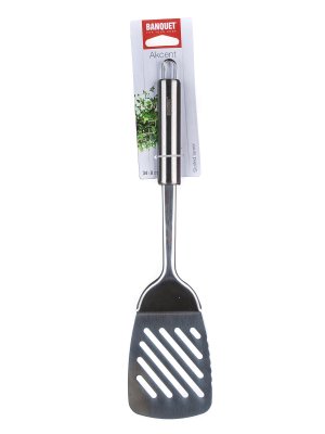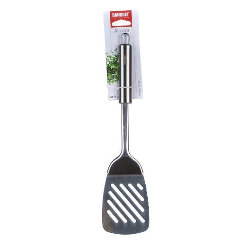 Obracečka s otvory AKCENT, vyrobená z nerezové oceli, je určena pro profesionální i domácí použití. Obracečka je opatřena praktickým očkem pro možnost zavěšení, snadno se udržuje a lze mýt v myčce na nádobí. Řada kuchyňského náčiní AKCENT splňuje náročné požadavky profesionálů a je vhodná i pro domácí použití. Jednoduchý funkční design zabezpečuje nadčasovost a dlouhou morální i kvalitativní životnost všech výrobků.