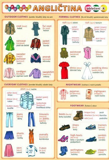 Ilustrovaný slovník zpracovaný dle jednotlivých témat. Názorné ilustrace pomáhají zapamatovat si nová slovíčka. 93 slovíček s výslovností - oblečení, obuv, doplňky, látkové vzory, klenoty, 20 frází.