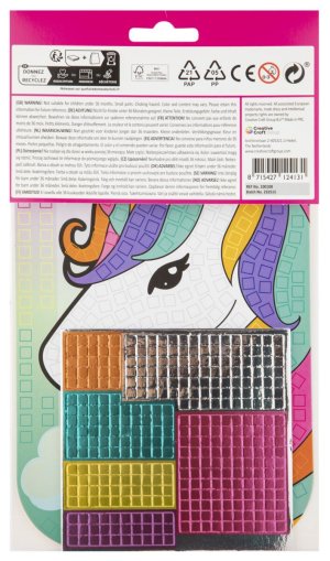 Sada obsahuje obrázky na které nalepíte různobarevné samolepky a tím vytvoříte mosaikový obrázek. Dostupné ve variantách motýl, dino, jednorožec a akvárium. Obrázek je velikosti A5. Vhodné od 3 let.