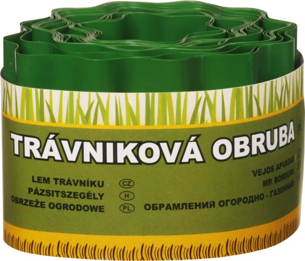 Trávníková obruba jednoznačně definuje okraj trávniku, který pevně a trvale odděluje trávník od záhonů. Okraj je dodáván v šířce 10 cm a návinu 9 m. Obruba trávníku by měla nad povrchem půdy přesahovat jen tolik, aby jej sekačka nepoškodila.