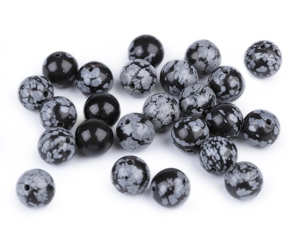 Minerální korálky z vločkového obsidiánu jsou oblíbené především šperkaři pro svou jedinečnou kresbu. Svou velikostí jsou ideální na výrobu Buddhových náramků. Jsou oblíbené na techniku drátování, v kombinaci s drahými kovy, ale i s obyčejnými drátky. Skvěle vypadají i na jednoduchých návlekových šňůrách, [které zajímavě ozvláštní.]