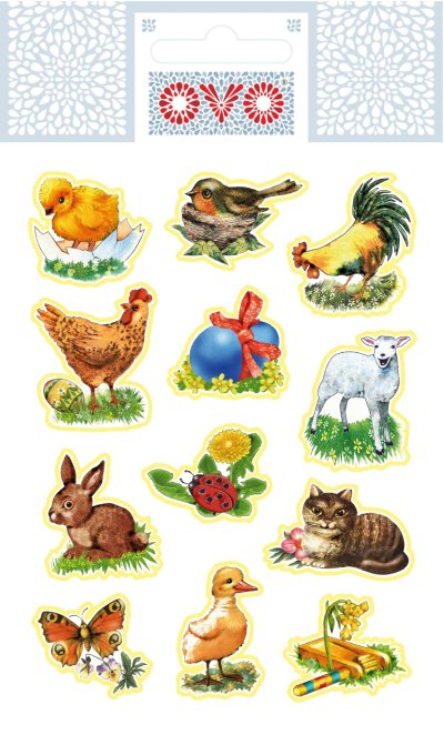 Obtisky na velikonoční vajíčka ve stylu tradičních českých obrázků s jarními motivy.