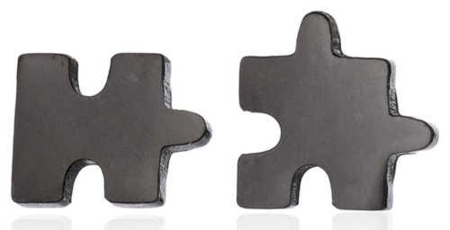 Originální puzzle náušnice z chirurgické oceli. Designové puzzle náušnice jsou vyrobeny z chirurgické oceli s jakostním označením 316L. Přibližná velikost jedné náušnice: 0,8 x 0,5 cm Typ uzávěru: puzeta Povrchová úprava: černá Materiál: chirurgická ocel