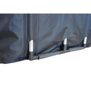 Konstrukce kádě využívá pět vrstev materiálů, které zajišťují pevnost, dlouhou životnost a dobrou tepelnou izolaci. Dvě vrstvy PVC chrání termoizolační výplň z česané bavlny před vlhkostí, zatímco voděodolný plášť zabraňuje prosakování vody. Vnější vrstva z polyesteru a nylonu navíc chrání káď před mechanickým poškozením.