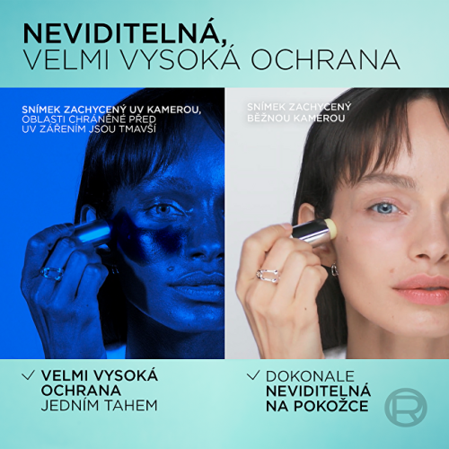 Tyčinka s UV filtrem zajišťuje velmi vysokou ochranu proti UVB a UVA záření. Pomáhá předcházet vzniku tmavých skvrn, známkám stárnutí a zároveň pleť hydratuje. S neviditelným finišem na každém odstínu pleti. Tyčinka je vhodná také na citlivá a suchá místa pokožky (oční kontury, rty). Obsahuje vitamin E, účinný antioxidant, který pomáhá chránit pleť před volnými radikály a vnějšími vlivy.