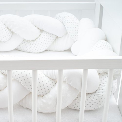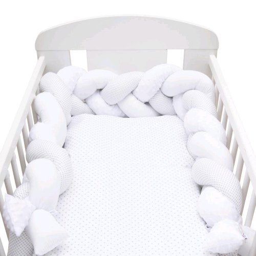 Heboučký a praktický pletený cop české značky New Baby je moderní alternativou tradičního nebo polštářového mantinelu nejen do dětské postýlky. Všechny tři prameny jsou vyrobeny z velmi kvalitního bavlněného materiálu, minky a antialergické polyesterové výplně a ručně spletené do copu. Můžete jej použít v postýlce, kolébce, kde chrání dítě před tvrdými příčkami postýlky a izoluje od studené stěny. Mantinel se přizpůsobí každé postýlce a pomocí tří přiložených stuh jej snadno upevníte. Starší dítě jej může využívat pro zábavu nebo jako originální dekoraci dětského pokoje.