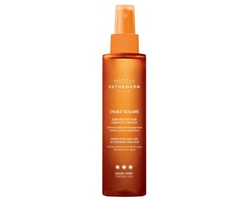 Suchý olej chrání pokožku a vlasy před nepříznivými vlivy UV záření a podporuje dlouhodobé a přirozené opálení.