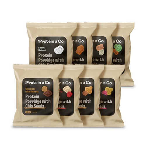 Ideální start do nového dne pro všechny, kteří chtějí snídat zdravě, rychle a s chutí. Tento balíček vám umožní vyzkoušet všechny oblíbené příchutě proteinových kaší Protein & Co bez nutnosti kupovat velká balení.