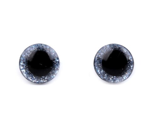 Polokulaté oči s glitrovou duhovkou se krásně třpytí. Umocní výraz vašich nejrůznějších postaviček či zvířátek. Mají závit, na který se nasadí duhovka, následně se provleče materiálem, a z druhé strany se pak nacvakne pojistka, která oči bezpečně připevní na místo. Pokud nebudete chtít, aby se oči třpytily, nemusíte duhovku použít, v tom případě zůstane duhovka transparentní. 1 sada = 1 oko + 1 třpytivá duhovka + 1 pojistka Délka vrutu je 1 cm. Na zacvaknutí pojistky je nutné vynaložit větší sílu.