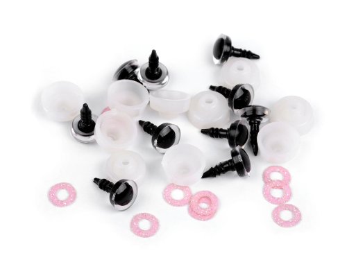 Polokulaté oči s glitrovou duhovkou se krásně třpytí. Umocní výraz vašich nejrůznějších postaviček či zvířátek. Mají závit, na který se nasadí duhovka, následně se provleče materiálem, a z druhé strany se pak nacvakne pojistka, která oči bezpečně připevní na místo. Pokud nebudete chtít, aby se oči třpytily, nemusíte duhovku použít, v tom případě zůstane duhovka transparentní.