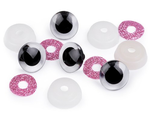 Polokulaté oči se třpytivou duhovkou umocní výraz vašich nejrůznějších postaviček či zvířátek. Mají závit, na který se nasadí duhovka, následně se provleče materiálem, a z druhé strany se pak nacvakne pojistka, která oči bezpečně připevní na místo. Pokud nebudete chtít, aby se oči třpytily, nemusíte duhovku použít, v tom případě zůstane duhovka transparentní. 1 sada = 1 oko + 1 třpytivá duhovka + 1 pojistka Délka vrutu je 1 cm. [Na zacvaknutí pojistky je nutné vynaložit větší sílu.]