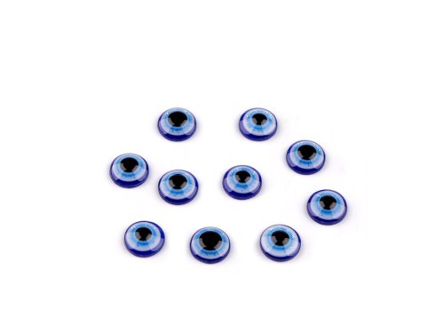 Kulaté oči s motivem Alláhova oka mají kvalitní zpracování. Díky zalitým glitrům se jemně třpytí. Mají tvar vypouklé čočky, obrázek oka krásně vynikne. Využijete je na tvorbu různých postaviček a zvířátek. Pro jejich přilepení je vhodné použít lepidlo na lepení kamínků. S oblibou se používají i na výrobu bižuterie, jako kabošony jsou vhodné k nalepení do kovového lůžka nebo k obšití korálky a rokajlem. Velice působivé jsou v drátovaných špercích.