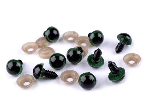 Polokulatá plastová očka využijete při výrobě nejrůznějších postaviček či zvířátek. Mají závit, který se provleče materiálem, a z druhé strany se pak nacvakne pojistka, která oči bezpečně připevní na místo. 1 [sada] = 1 očičko + 1 pojistka Délka vrutu je 1,4 cm. Nevhodné pro děti do 3 let.