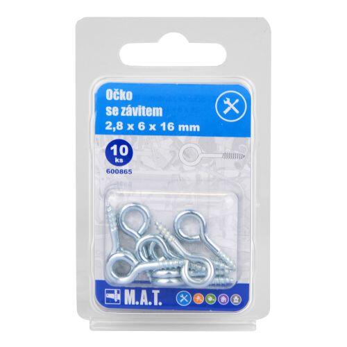 Zavřené očko se závitem 16 x 6 x 2,8 mm pro uchycení předmětů a břemen do různých materiálů.