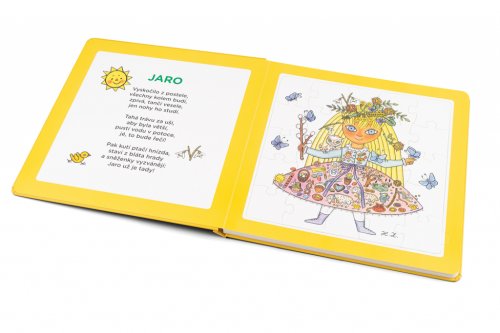 V půvabné knížce s kouzelnými ilustracemi renomované autorky Heleny Zmatlíkové, tolik oblíbenými již hezkou řádkou generací, poznají děti jaro, léto, podzim a zimu. Věděli jste, že jaro je děvčátko s věnečkem z kvítí a sukní plnou mláďátek, léto pasáček, jehož šaty voní prázdninami, podzim dědeček s dýmkou nesoucí poslední plody sadů a lesů a zima ledová babička s rancem vnášející radost a barvy do dlouhých zimních večerů? Obrázky pro nejmenší doprovázejí veselé říkanky Aleny Zímové, zkušené autorky několika knih básniček pro děti.