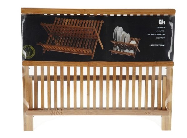 Rozkládací dvoupatrový odkapávač na nádobí, talíře i pokličky z bambusového dřeva. Praktický a elegantní odkapávač od značky Excellent je ideálním řešením pro ukládání vašeho nádobí. S dvěma patry poskytuje dostatek místa pro talíře, pokličky, hrnky, sklenice a další kuchyňské náčiní.Odkapávač je vyroben z vysoce kvalitního bambusového dřeva, které je odolné, trvanlivé a ekologicky šetrné, což zajišťuje dlouhou životnost a přírodní vzhled produktu. Lze jej celý složit úplně na plocho a v případě nepoužívání uskladnit.- materiál: 100% bambusové dřevo- rozměry: 42 x 32 x 26 cm- prostorný, 2 patrový- skládací