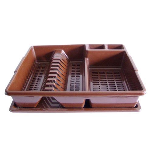Odkapávač s podnosem, který zachytí přebytečnou vodu z umytého nádobí.