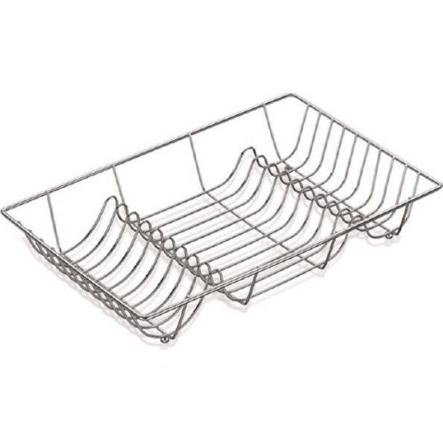 Chromovaný kuchyňský odkapávač na nádobí.
