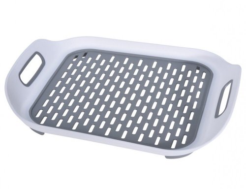 prostorný odkapávací tác- postranní rukojeti pro přenášení- pogumovaný vnitřní povrch- perfektní využití také jako podložka do dřezu- ochrání dřez před poškrábáním, usnadňuje mytí nádobí či oplachování zeleniny a ovoce- nenáročný na údržbu- rozměry 36 x 32 cm