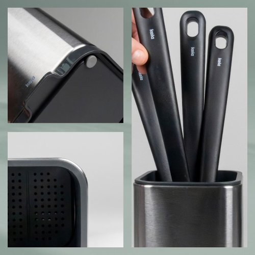 Odkapávač na příbory Plata kombinuje elegantní design s propracovanou funkčností a je nezbytností každé moderní kuchyně. Vyrobeno z vysoce kvalitní nerezové oceli s elegantním matně stříbrným vzhledem, perfektně zapadne do každého prostředí kuchyně. Díky povrchové úpravě proti otiskům prstů zůstává povrch bez nevzhledných otisků prstů a vždy vypadá bezchybně.
