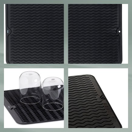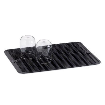 Silikonová podložka na odkapávání nádobí. Velmi praktická, pokud potřebujete šetřit místem v kuchyni. Podložku lze po použití jednoduše opláchnout nebo vyčistit a následně srolovat nebo přeložit a uskladnit. Vyšší okraje a drážky na povrchu pro optimální rozvod přebytečné vody, kterou lze poté vylít. Rozměry: 40 x 30 x 0,6 cm. Černá barva.