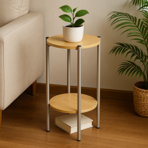 Přidejte do svého interiéru praktický a zároveň elegantní doplněk s tímto odkládacím stolkem. Pevný rám z pískovaného kovu se snoubí s dvouvrstvou deskou z MDF dýhy, která vyniká přírodní texturou a odolností. Kompaktní rozměry 31 × 31 × 61 cm z něj činí ideální řešení pro malé prostory i moderní bydlení.