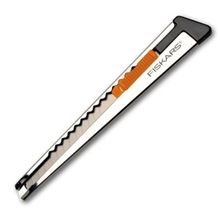 Velmi lehký odlamovací nůž určený pro časté a snadné řezání Kovová konstrukce s praktickým klipem na zavěšení na zadní straně Automatické uzamykání čepele; vysouvání čepele stisknutím tlačítka