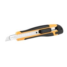 Tělo nože je z ABS plastu s gripem z termoplastické gumy pro snadný a bezpečný úchop Vodicí lišta, karbonový břit 9 mm Rozměr nože: 137 x 28 x 14 mm Váha 32,5 g