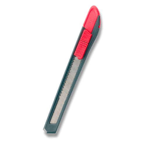 Odlamovací nůž. Zatahovatelné odlamovací břity o šíři 9 mm. Integrovaná pojistka.