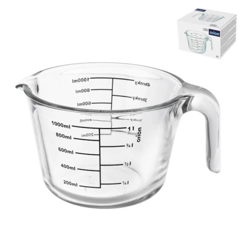 Kvalitní skleněná odměrka je vyrobena z odolného borosilikátového skla, které snáší teploty od -40 °C do +300 °C. Díky tomu ji můžete bez obav použít v mikrovlnné troubě, mrazáku i myčce nádobí. Navíc umožňuje přímý ohřev na mírném stupni tepelného zdroje, což oceníte při přípravě omáček, rozpouštění másla nebo ohřívání menšího množství mléka pro kvásek. Odměrka je opatřena praktickým potiskem se třemi různými stupnicemi a měřit tak můžete v ml, l a hrnkách. Průměr 15.8 cm, výška 11 cm. Celkový objem 1.2 l, odměrka do 1000 ml / 4 hrnky. Materiál silnostěnné borosilikátové sklo. EAN 8592381251000