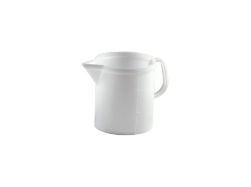 Plastová odměrka s uchem, výlevkou a stupnicí pro odměření tekutin.