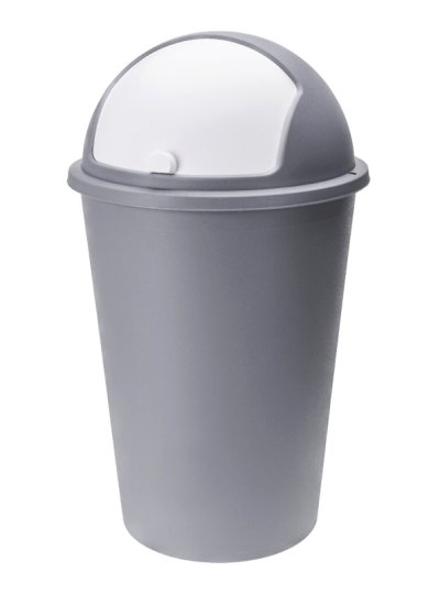 klasický koš na odpadky v kulatém provedení s výsuvným víkem- materiál: pevný PP plast- sundávací horní víko usnadňuje výměnu i uchycení pytle na odpad- vhodný do jakýchkoliv prostor, do interiéru i exteriéru- výška: 68 cm- velký objem: 50 l- barva: pastelová šedá s bílým víkem